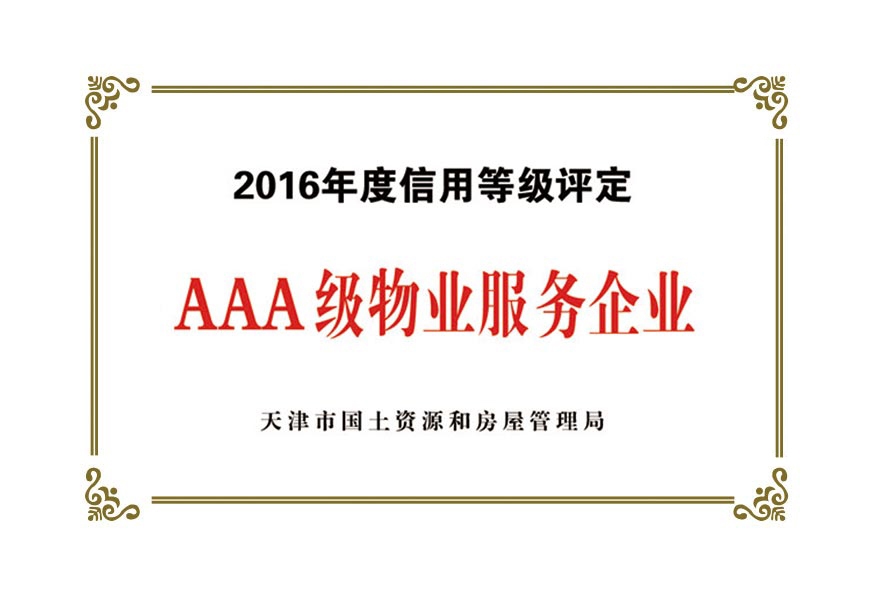 公司目前被授予:中國保安協(xié)會理事單位、物業(yè)管理綜合實(shí)力入圍企業(yè)、天津市物業(yè)協(xié)會理事單位、天津市保安協(xié)會常務(wù)理事單位、天津市保潔協(xié)會明星企業(yè)、天津市科技小巨人企業(yè)、天津市科技型企業(yè)、天津市物業(yè)管理企業(yè)優(yōu)秀項目經(jīng)理、企業(yè)信用評價體系A(chǔ)AA級企業(yè)、AAA級誠信經(jīng)營示范單位、AAA級重合同守信用單位、2017年被天津市工商業(yè)聯(lián)合會評為天津市民營企業(yè)促進(jìn)就業(yè)百強(qiáng)企業(yè)、社會捐贈百強(qiáng)企業(yè)、2018年銷售收入百強(qiáng)企業(yè),2020年被天津市退役軍人事務(wù)局評為天津市吸納退役軍人就業(yè)先進(jìn)單位。
